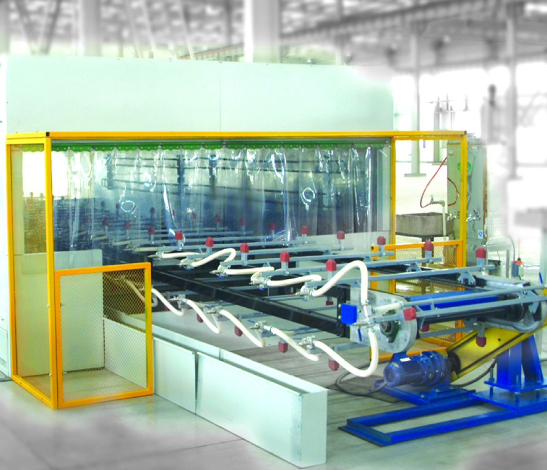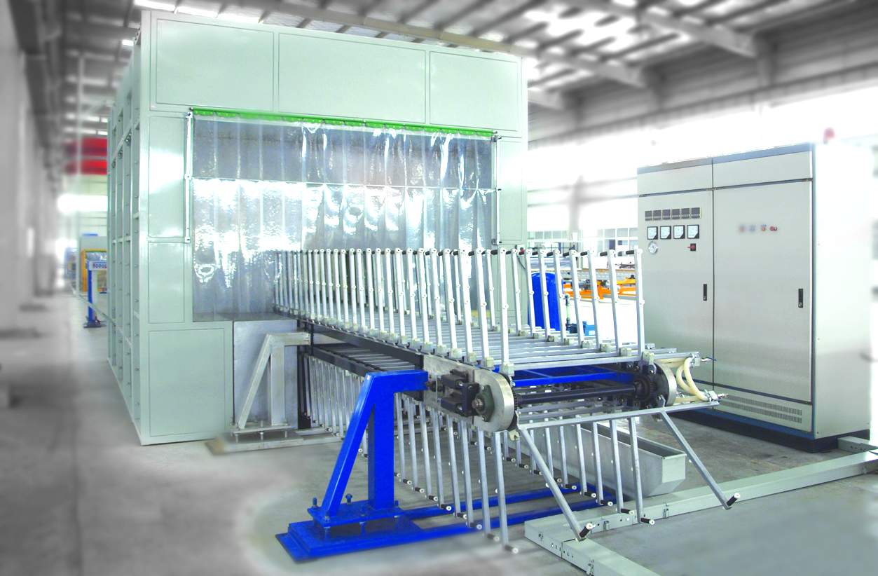 ● 該設(shè)備主要由加熱段、傳動(dòng)系統(tǒng)、抽真空系統(tǒng)、熱循環(huán)系統(tǒng)等組成,采用鏈條傳動(dòng)變頻調(diào)速,自動(dòng)控溫裝置。傳動(dòng)部分按玻璃輸送小車(chē)支撐玻璃的方式分為:支點(diǎn)臥式機(jī)和豎桿立式機(jī)。